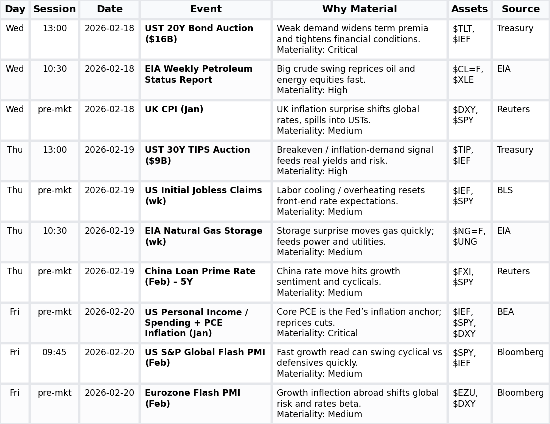 • Softer Jan CPI at +0.2% m/m pulled 10Y yields -18 bps and DXY -0.7% — $TLT, $DXY, $SPY